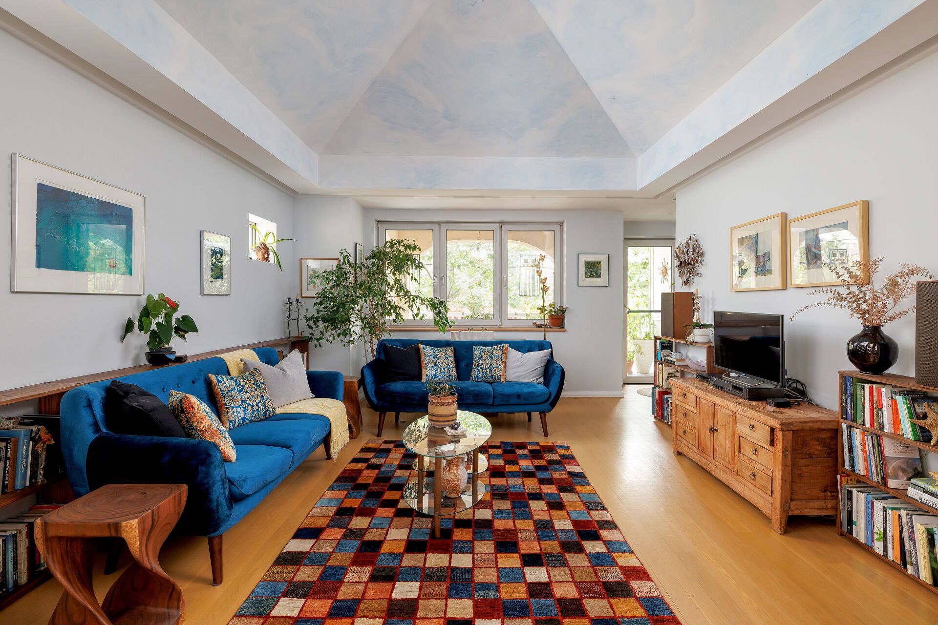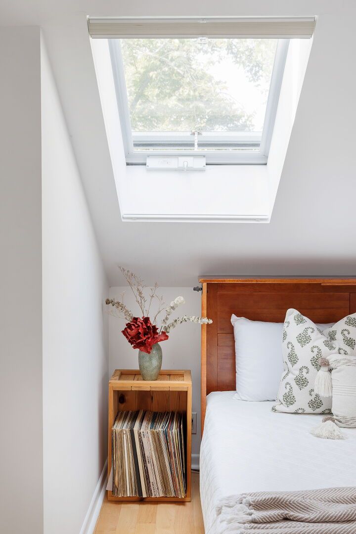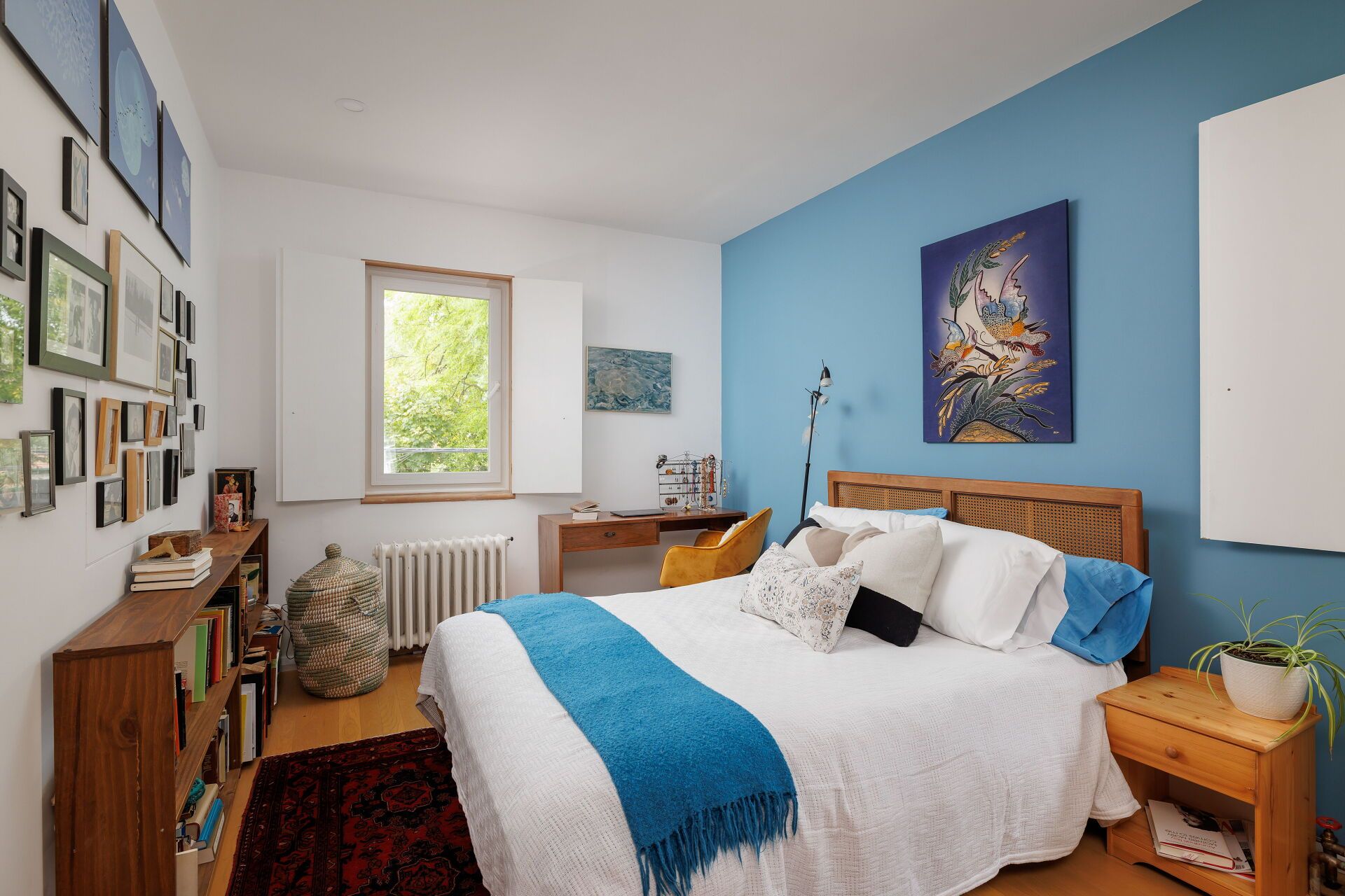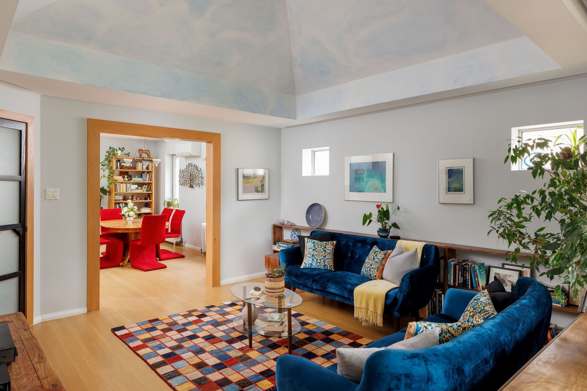 Occupying the upper two levels of the home, this 2+1 bedroom suite offers over 1,300 square feet of airy, sun-filled living. With skylights that shift with the light and temperature at the touch of a remote, maple hardwood floors that reflect the sun, and soaring ceilings that make every room feel expansive, this home is made for people who crave both space and calm.