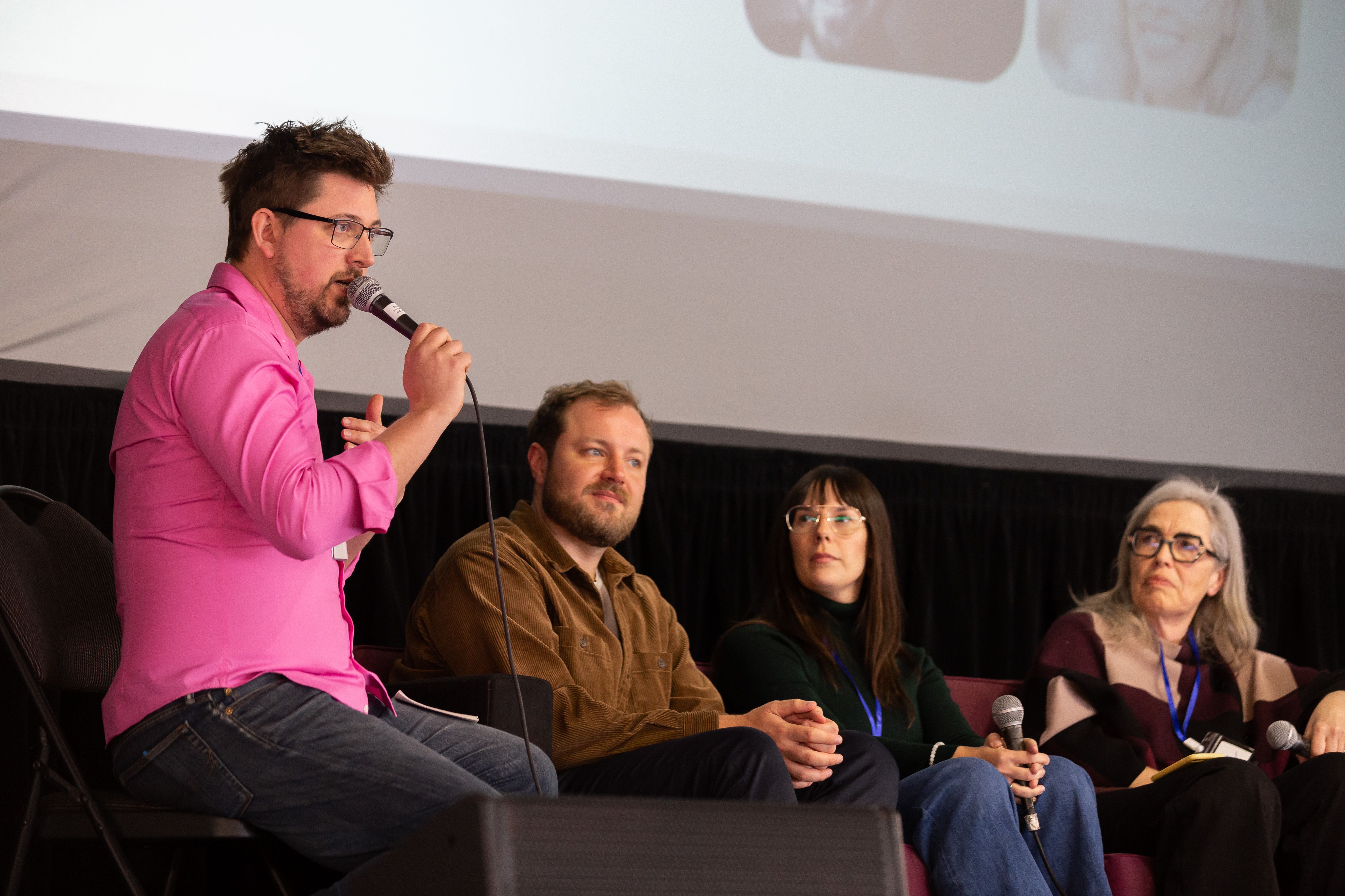 Our final panel featured Mike, Craig, Jackie, and Celia sharing the beautiful, messy day-to-day realities of their co-housing setups. Mike, Craig, and Jackie share a property featuring a duplex and a laneway house. They spoke about the benefits of sharing a vehicle, taking turns cooking meals, and dividing the mental load of homeownership—like having designated people for finances versus outdoor maintenance. They maintain distinct private entrances. Because of this layout, day-to-day encounters are minimal enough that they sometimes have to schedule time to see each other, though they enjoy the comfort of seeing “signs of life” from their co-owners through the windows. Celia shared her experience downsizing from a three-bedroom home to a custom laneway suite on her property, while sharing her main home.